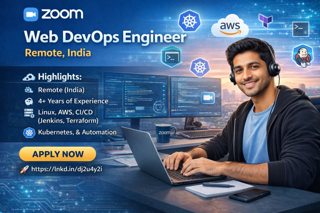 Web DevOps Engineer – Zoom (Remote, India) Location: Remote (India) Experience Required: 4+ Years Zoom Video Communications is currently hiring … Read more