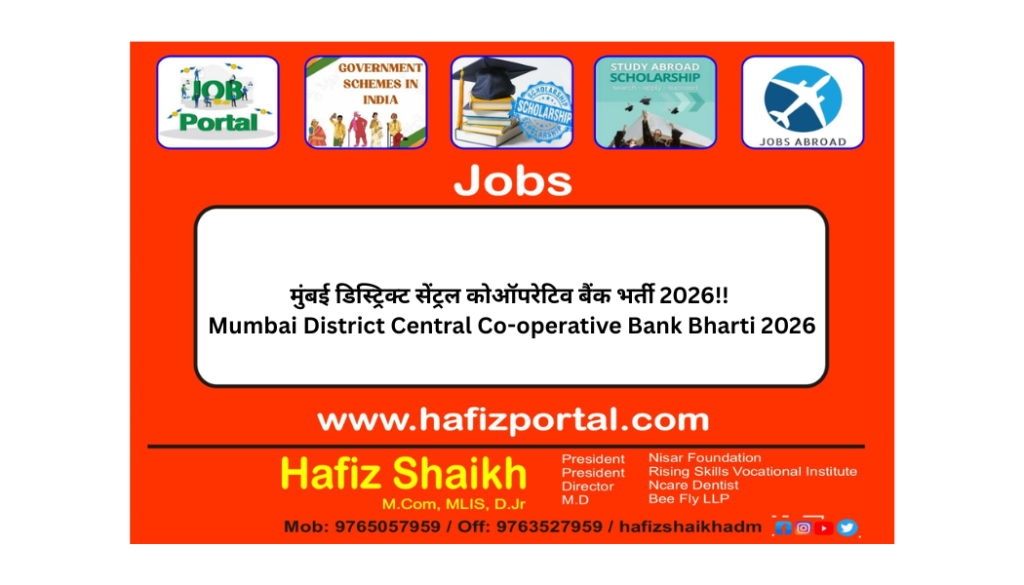 मुंबई डिस्ट्रिक्ट सेंट्रल कोऑपरेटिव बैंक भर्ती 2026!! |Mumbai District Central Co-operative Bank Bharti 2026 Mumbai District Central Co-operative Bank Recruitment … Read more