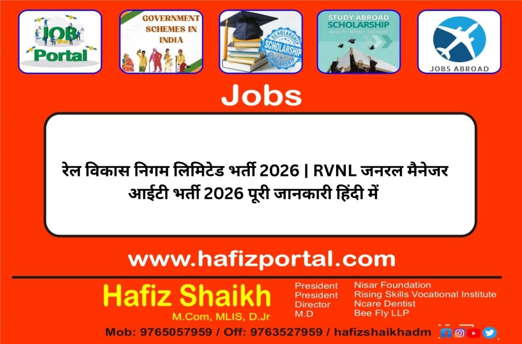 रेल विकास निगम लिमिटेड भर्ती 2026 | RVNL जनरल मैनेजर आईटी भर्ती 2026 पूरी जानकारी हिंदी में रेलवे क्षेत्र में … Read more