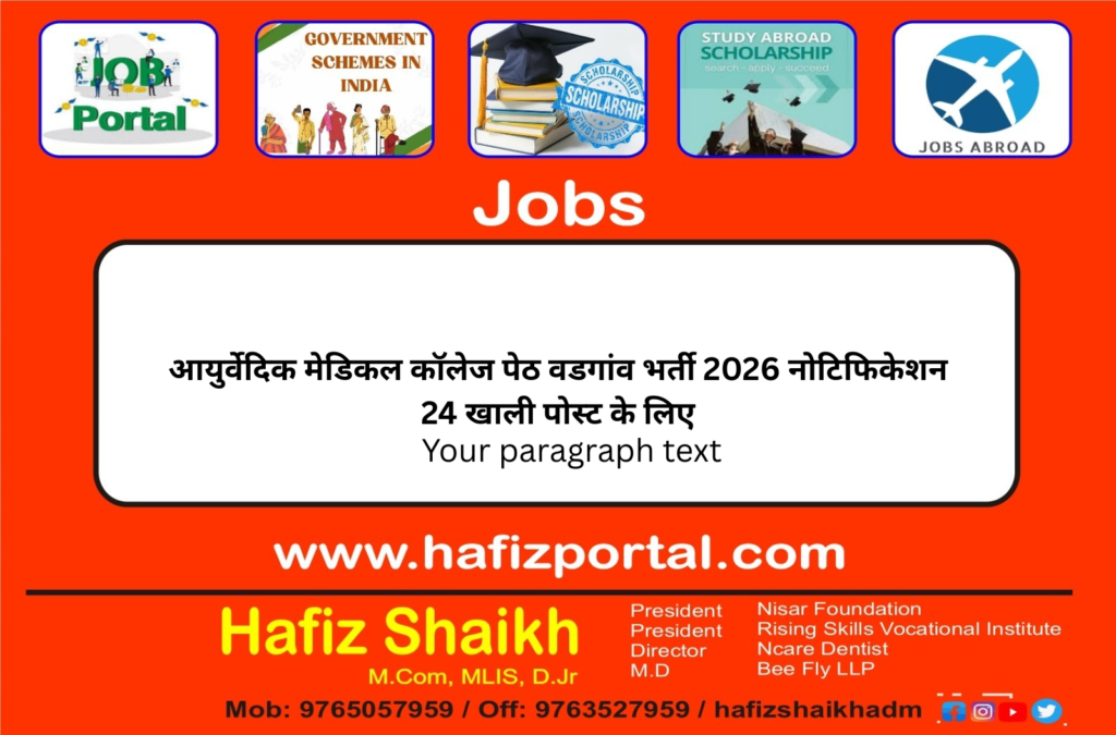 आयुर्वेदिक मेडिकल कॉलेज पेठ वडगांव भर्ती 2026 नोटिफिकेशन 24 खाली पोस्ट के लिए टीचिंग फैकल्टी पोस्ट की भर्ती के लिए … Read more