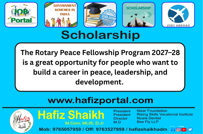 The Rotary Peace Fellowship Program 2027–28 is a great opportunity for people who want to build a career in peace, leadership, and development.